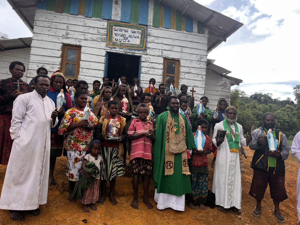 KEUSKUPANTIMIKA.ORG – Minggu, 09 Juni 2024, Paroki St. Yohanes Pemandi Ugapuga mengadakan pemberkatan patung Yesus, Maria, Yosep, rosario, salib, dan buku-buku doa sebagai bagian dari program untuk mendorong setiap keluarga memiliki altar doa di rumah mereka masing-masing. Kegiatan ini dilaksanakan di Stasi St. Yoseph Nuwa, Paroki Ugapuga, Keuskupan Timika.
